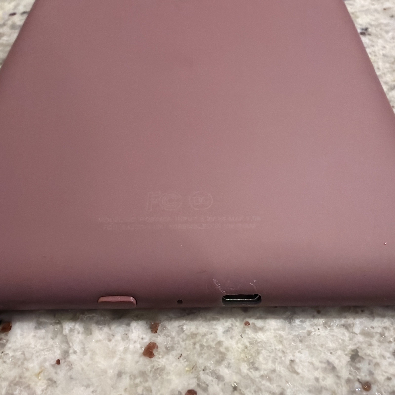 Battery replaced Feb 2024. Works great. Very few scuffs. Comes with Fintie case with matching color. Case is worn but clean. Pink is closer to dusty rose, not hot pink.