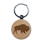 American Buffalo Bison Solid Engraved Wood Round Keychain Tag Charm