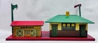 American Flyer O Gauge Tin Freight Station 17” Lighted Vintage Works Vintage American Flyer tin freight station accessory, a classic piece for O gauge train layouts. This larger 17-inch version features the “Flyer Town Freight Station 91” graphic and includes working interior lighting that has been tested and functions as shown. A great display piece or layout addition with strong visual presence. •Brand: American Flyer •Type: Freight station accessory •Gauge: O gauge •Material: Tin litho metal •Width: 17 inches •Height: Approx. 8 inches •Depth: Approx. 6.5 inches •Features: Lighted interior, tested and working •Condition: Shows vintage wear including scratches, paint loss, and age-related marks •Completeness: Appears complete as shown •Notes: Sold as is, please review photos carefully for condition details Nice vintage example with great color and graphics. Displays well and would make a solid addition to any American Flyer O gauge setup or collection. Ships securely.