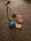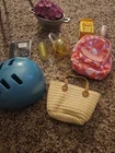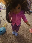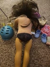 The American Girl 2014 Girl Doll and Mixed Accessories is a collection that includes a doll, doll clothes, and accessories from the Today product line. The doll features brown hair, and white skin. This set is perfect for children aged 8 years and above, as it offers an anatomically correct doll that is part of the American Girl brand and is considered a retired product. Doll has had toes painted and mid section of the doll. See photos. Accessories are not American Girl.
