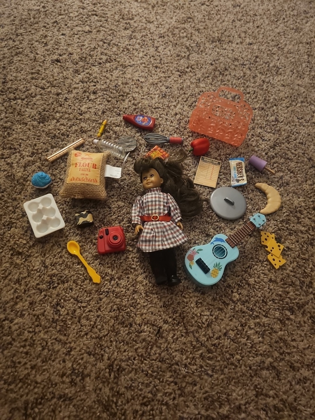 The product is a 6" mini American Girl Samantha doll with a brown wavy hair, medium complexion, and brown eyes. It comes with a meet outfit and mixed accessories, making it a great addition to any doll collection. This original doll from the franchise American Girl is designed for children aged 8 years and up, and is part of the My American Girl product line. Made of cloth, this doll is perfect for doll playsets and imaginative play. Accessories are not American girl. Mixed brands