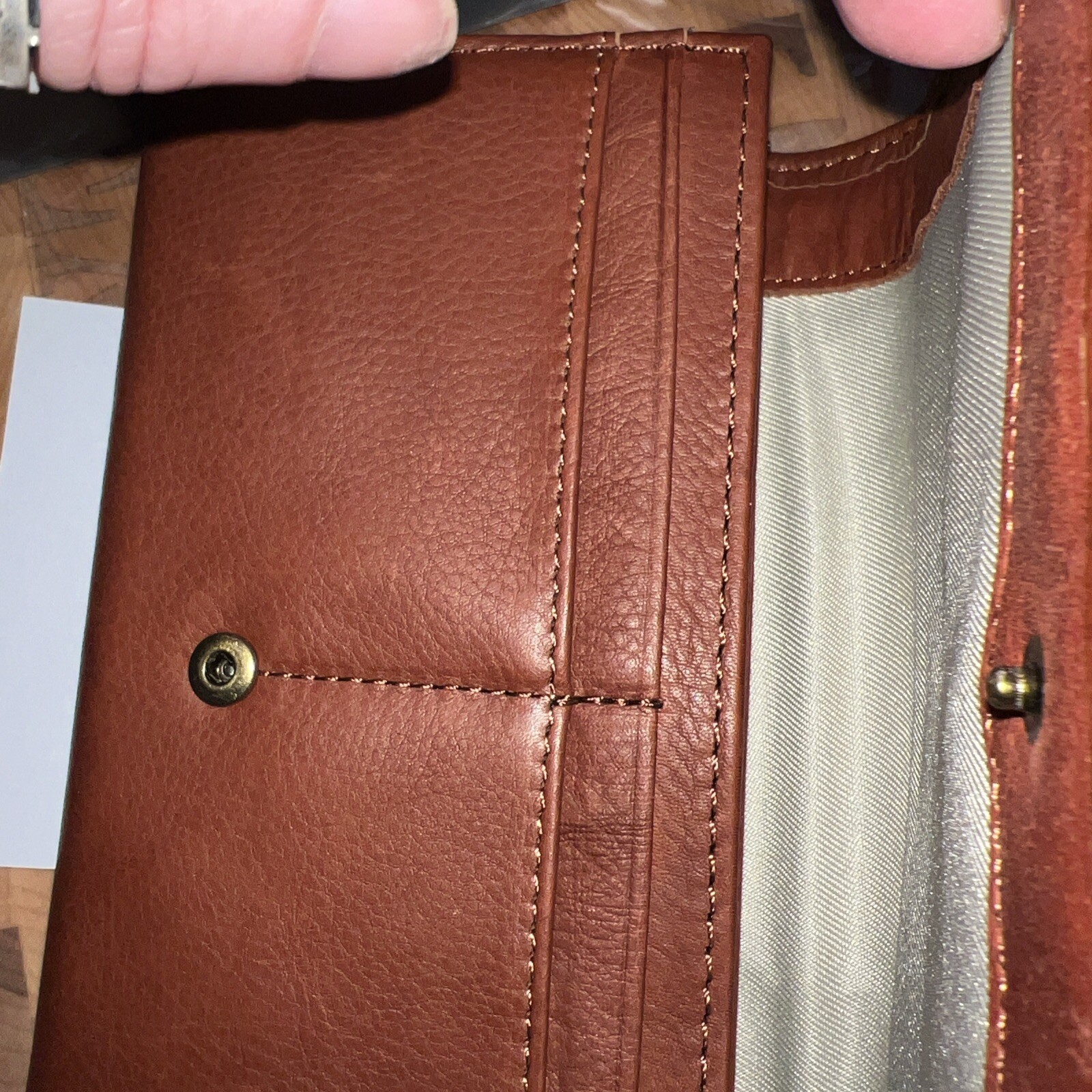 The American Leather Company's Harmony Wallet with RFID in Brandy Smooth is the perfect accessory for any woman. Crafted with high-quality leather, this wallet exudes elegance and sophistication. The wallet features various compartments and slots for all your essentials, including ID, credit cards, and cash. The RFID technology ensures your personal information stays safe and secure. The Harmony Wallet is a must-have for any fashion-forward woman. Its unique character, expressed through the Harmony design, adds an element of personality to any outfit. The wallet is suitable for any occasion, whether it's a night out with friends or a formal event. Get your hands on this exquisite American Leather Company wallet today! American Leather Co. Harmony RFID Bifold Wallet Description This stunning wallet is made of beautiful leather and holds all your important cash, cards, and coins with ease. From American Leather Co. Brandy * Not all cards contain RFID contactless technology - this product only helps protect cards with RFID contactless technology * Style: Harmony * Front logo patch, snap closure * One zipper pocket, 10 credit card slots * Measures approximately 7.38"W x 1.25"D x 4.25"L; weighs 0.3 lb * Body 100% leather; lining 100% polyester * Imported