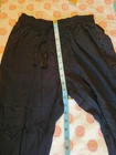 Elevate your casual wardrobe with these American Rag soft pants. Featuring an elastic waist and cuffs with crochet trim, front pockets and tasseled accents, these pants are perfect for travel, workwear, or everyday casual occasions. The high-rise pants have a straight leg style and are made of 100% rayon material, making them comfortable to wear in any season - winter, summer, fall, or spring. These black pants come in size S and have a pull-on closure with a drawstring. They have a flat front and are machine washable. Ideal for women who want to look stylish and comfortable, these pants are a great addition to any wardrobe. See photos for measurements approximate. NWT. Retail value $44.00. Soft, comfortable, and classy!