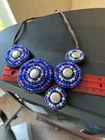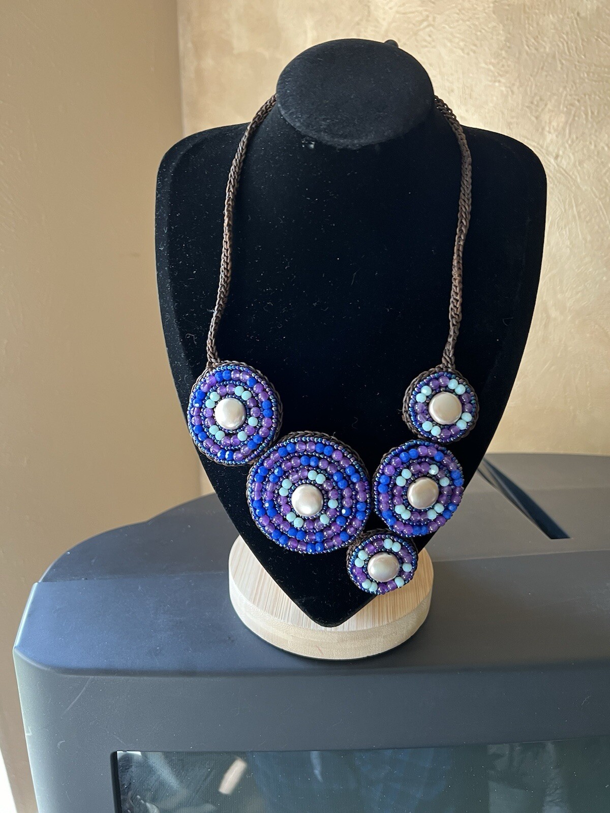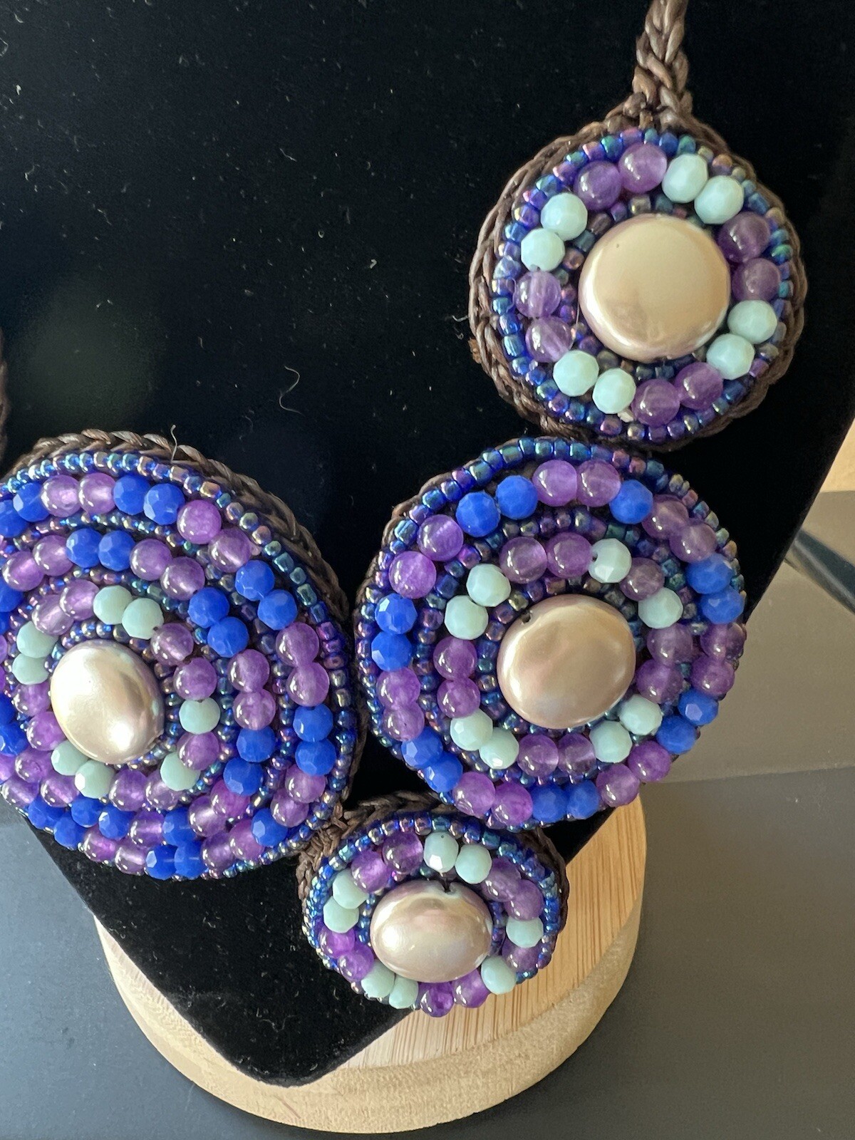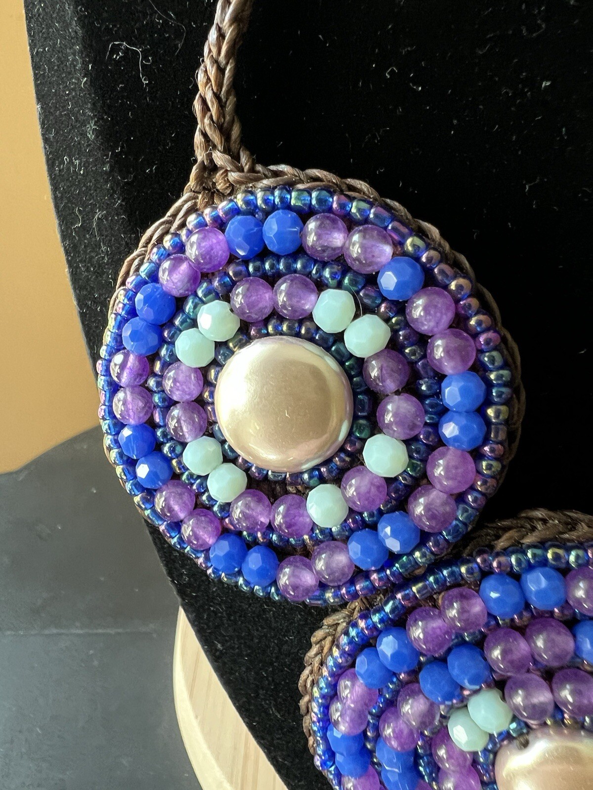Facetted amethyst and blue stone on a woven backing necklace. Stunning! In like new condition
