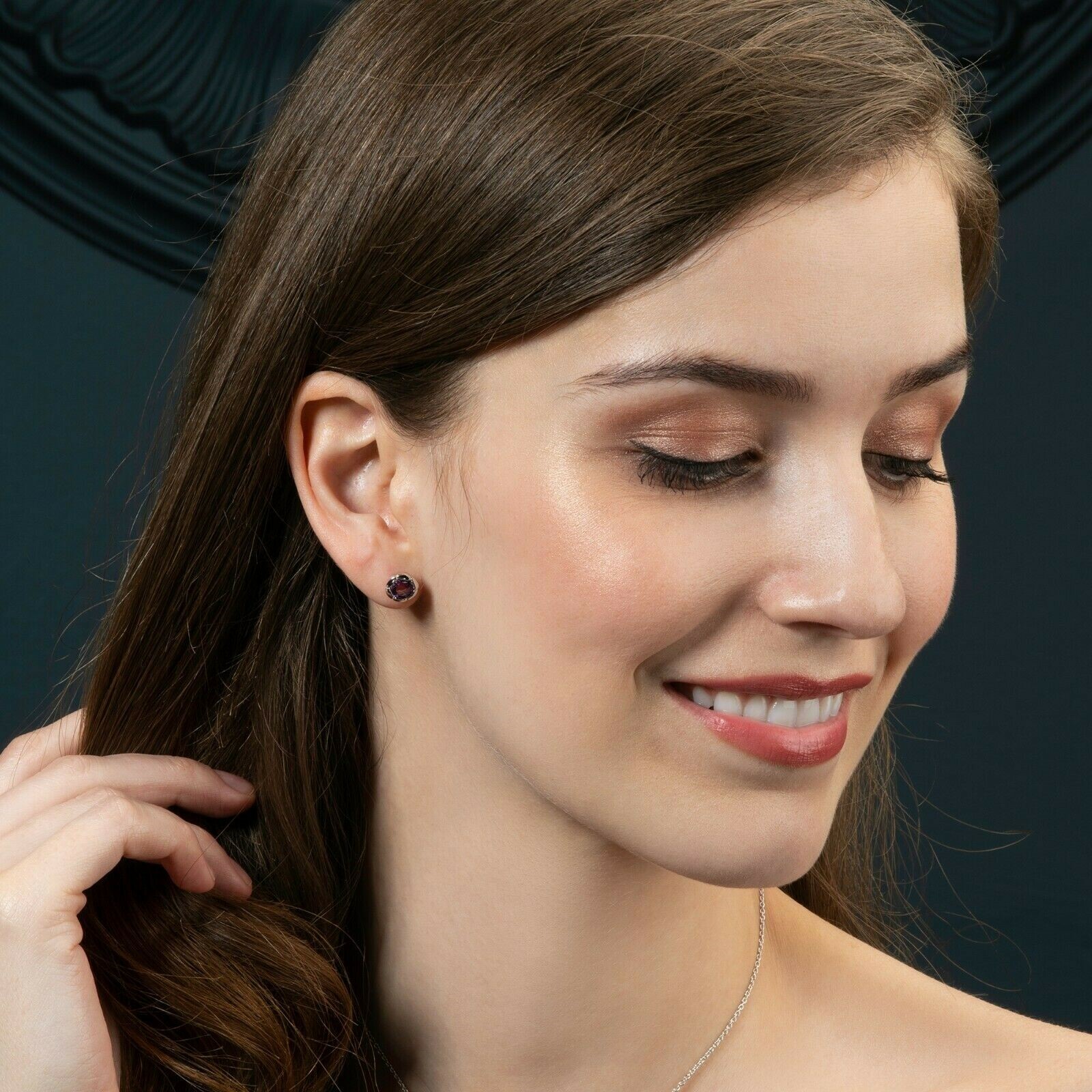 Features Sterling silver Amethyst earrings for women. Elegant silver stud earrings for women with round sparkling amethyst gemstones. 9mm round earrings set with 7mm round Amethyst stones; Handmade earrings set on a stylish 925 silver metal frame, highlighting the sparkling Amethyst gemstones. Solid silver earrings for women. These ladies' earrings are made from Rhodium plated 925 Sterling Silver. High-quality 925 sterling silver studs for women and teenage girls. All our sterling silver jewellery is Rhodium plated adding a protective layer to reduce tarnishing and keep a long-lasting shine. Stylish gemstone earrings for women presented in a specially designed jewellery box, creating a thoughtful gift for a friend – or a well-earned treat for you! Description Namana offers sophisticated, effortless luxury for discerning women. Each piece adds a touch of understated glamour that can comfortably be worn at any time, bridging the gap between day and evening. The Namana woman is looking for timeless chic with a hint of rare and sophisticated glamour. Express yourself by adding daring elegance to a simple top or modern refinement to a smart dress. These unique earrings for women with their colourful stones are elegant and distinguished. The colourful gemstones in fiery colours are brought together in refined, elegant sterling silver settings. These gemstone earrings would make a sparkling addition to any wardrobe. Every item of NAMANA jewellery is presented in an attractive gift box, making it a perfect present. Pick these gemstone earrings for her or a well-deserved treat for yourself!