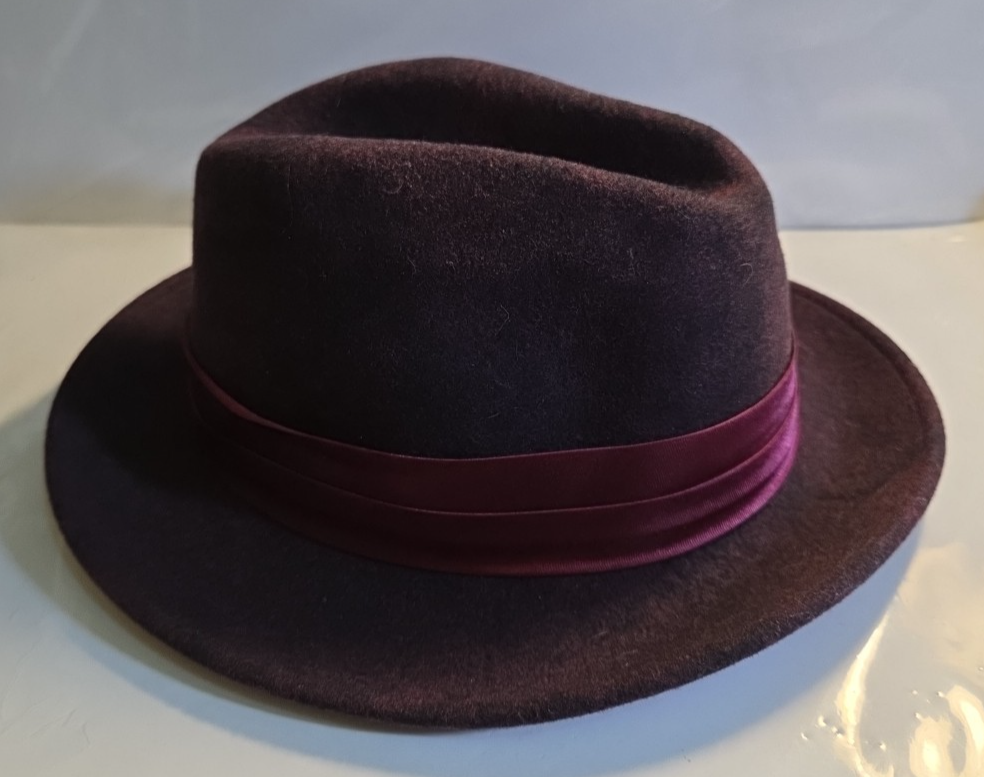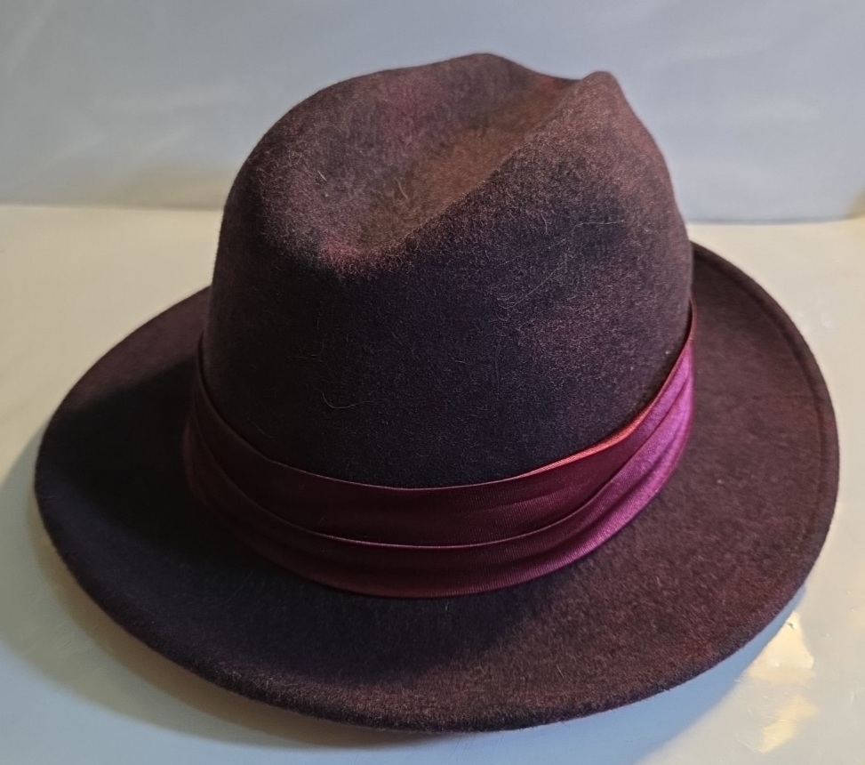 ANGELO FEDORA 100% WOOL FELT COLLECTION HAT Size Small. Made in the Ecuador- Great condition! please look at the photos - photos are part of the description - THE COLOR IS HARD TO DESCRIBE. PURPLE/PINK/ROSE RED.