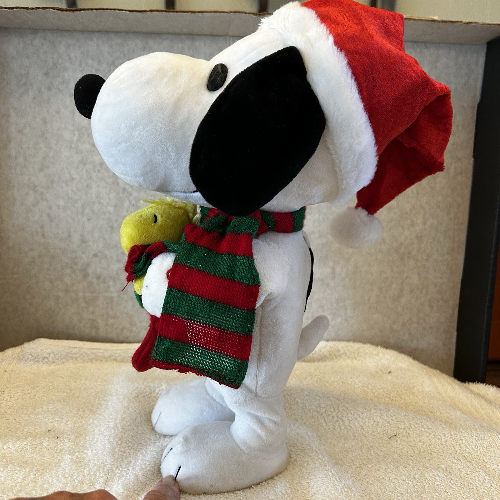 Bring some holiday cheer to your home with this Gemmy Peanuts animated Christmas decoration featuring the beloved characters Snoopy and Woodstock. As the iconic theme song plays, watch as the duo dances to the tune with intricate puppet animations. This charming piece is perfect for fans of the Peanuts franchise and collectors of animation merchandise alike. Requires 3 AAA batteries to operate.