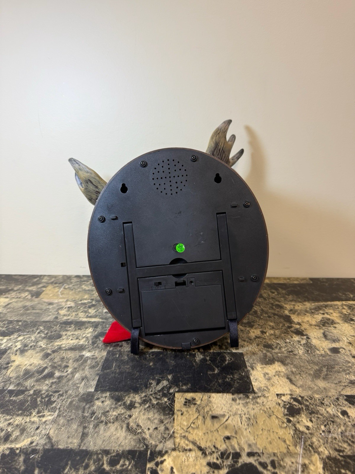 Gemmy presents the Animated Raphie The Singing Christmas Moose, a festive addition to your holiday decor. This charming brown moose is mounted on a wreath and is sure to bring a touch of holiday cheer to your home with its delightful singing tune. The moose is crafted from plastic and has been tested to ensure it works perfectly.