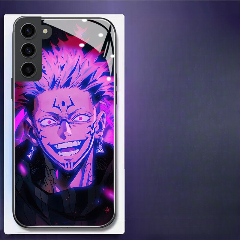 Cool Anime LED Light Up Glass Phone Case For Samsung S24 Ultra S23 Plus S22 S21