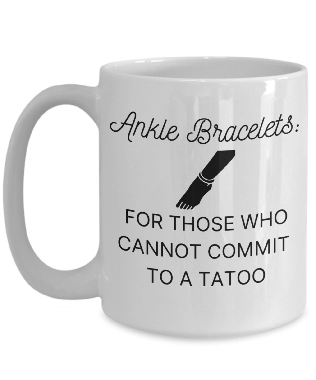 Funny Coffee Mug For Women Teen Girls Who Like To Wear Jewelry On Their Ankles Called Anklets Like Boho Style Product Details.. This high quality 11oz. ceramic white mug has a premium hard coat that provides crisp and vibrant color reproduction sure to last for years. Perfect for all hot & cold beverages. The highest quality printing possible is used. It will never fade no matter how many times you wash it. Material: 100% Ceramic. Print both sides. Dishwasher and Microwave Safe. High Gloss + Premium White Finish. Printed in the U.S.A. Personalized & Custom. We support personalized and custom mug to add custom, when placing an order, you can add notes to the "order note" in shipping address section. Also you can contact us directly via message. Shipping Info. Ready to ship in 1 to 2 business days, All products are made-to-order and proudly printed in the United States. Shipped by USPS and DHL, You will receive your order in 5-7 days. Replace & Refund. All products are defective during shipping broken, chipped will be replaced free of charge. You are not satisfied with the product, we will refund 100% money to you. If any other issues arise, please do not hesitate to message, we would be more than happy to assist you.