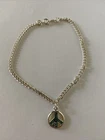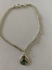 Silver Plate Chain Anklet Blue Peace sign Charm Lovely fine link Chain with a Peace Charm in the center of Chain. The Overall length of the Chain is approx.22 cm The Charm is approx. 1 cm (little over) wide and the same drop. The Anklet is Fixed securely with a Silver Plate Spring Ring. G-122 Payment & Postage PayPal and Direct Bank Deposit is Accepted. Your Purchase will be posted by Australia Post, Standard Postage. Tracking is available by selecting Registered Post in Options. A Signature will be required upon delivery; if no one is available to sign a card will be left for collection at your Post Office. Otherwise for a quicker Postage Delivery Service, you can select the Express Postage Option at a extra charge. Providing your Postcode falls in the Australia Post Domestic Express Postage area, otherwise a delay of a couple of days may occur. International Buyers~ Paypal is the only form of Payment available. Any Charges eg. Import Duties, Taxes etc are the Buyers Responsibility; Please check your countries custom details for any additional costs before your Purchase. Thank you for Visiting. Please call again, new items are listed regulary, also sign up for my stores newsletter, and pop me down as a favorite store!!