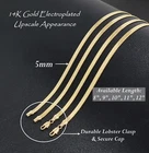 DESCRIPTION -COLOR : ELECTRO GOLD PLATED (MADE IN KOREA) -MATERIAL: ALLOY , FASHION COSTUME JEWELRY -SIZE: 5mm, 7mm 9", 10", 11", 12" - Q'TY - 1 PC PAYMENT WE ONLY ACCEPT PAYPAL We only ship to confirm papal address . For Buy it Now Buyer all Payment is due immediately at checkout. If you have any questions regarding the item please ask us before you check out. SHIPPING All order is shipped via United States Postal Service USPS First Class Mail with tracking number (2 – 5 business days) We do ship to anywhere in United States. Orders are shipped every weekday. Orders are usually processed and shipped within 1-2 business days of payment received. INTERNATIONAL SHIPMENTS Your order will be charged custom fee (taxes, duties, processing fee etc) when item arrives these charges are the buyer's responsibility. The shipping charge that you pay does not include custom Fees. Please check with your local custom office for more information. We are not able to mark customs forms as gift or lower value. Delivery time outside US : Expect 3 to 4 weeks. Sometime international package takes longer than usual depended on the customs/duties. Please kindly understand and we appreciate your patience. If you do not receive your package on time, please contact us for further assistance. RETURN POLICY We accept returns / exchanges up to 14 days. Please contact us to make a return. We will answer in 24-48 hours. Any item return must be same Condition as it was we sent to you. We will issue you a refund for the purchase. We will not give refund if buyer wore them. All customers will pay return shipping fee. Defective product can be returned for credit or replacement. CONTACT US Please contact us with any problems and be kindly communicated before placing bid or order to avoid unnecessary misunderstanding. If you are NOT completely satisfied with your items, Please contact us before leaving Neutral or Negative feedback. Our goal is to provide you with auctions that let you decide the price. We will try to offer 100% customer satisfaction on every purchase. Please Visit our EBay Store and check our other items also.