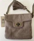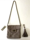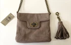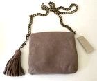 Ann Taylor Small HandBag--Taupe--GENUINE Leather--Purse Brand new with retail tags~ MSRP $128 Super cute!! Metal twist clasp purse opening, canvas lined with a zippered interior pocket, and 2 additional pockets, removable fringe tassel, and metal chain link strap. I ship ASAP and with tracking.