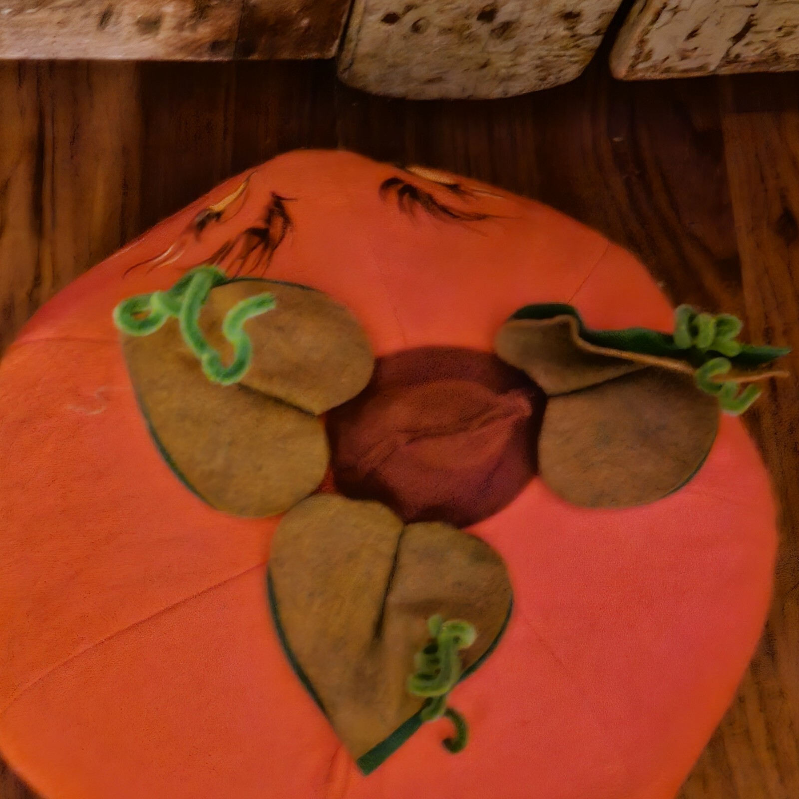 The Annalee Pumpkin Jack-o'-lantern is a vintage Halloween decoration from 1991. Made of orange felt, this kitschy anthropomorphic piece adds a fun and festive touch to any Halloween display. Large see measurements