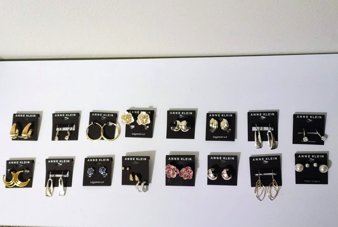 Elegant Anne Klein earrings lot featuring a wide variety of classic and statement styles. This is a beautiful mixed bundle—perfect for resale, gifting, boutique inventory, or personal wear. Lot Includes (as pictured): Hoop earrings (small to medium) Huggie hoops Stud earrings (pearls, crystals, stones) Drop & dangle earrings Floral and modern designs Gold-tone and silver-tone finishes Faux pearl, crystal, and enamel accents All items are brand new on original Anne Klein display cards . You will receive exactly the pieces shown in the photos .