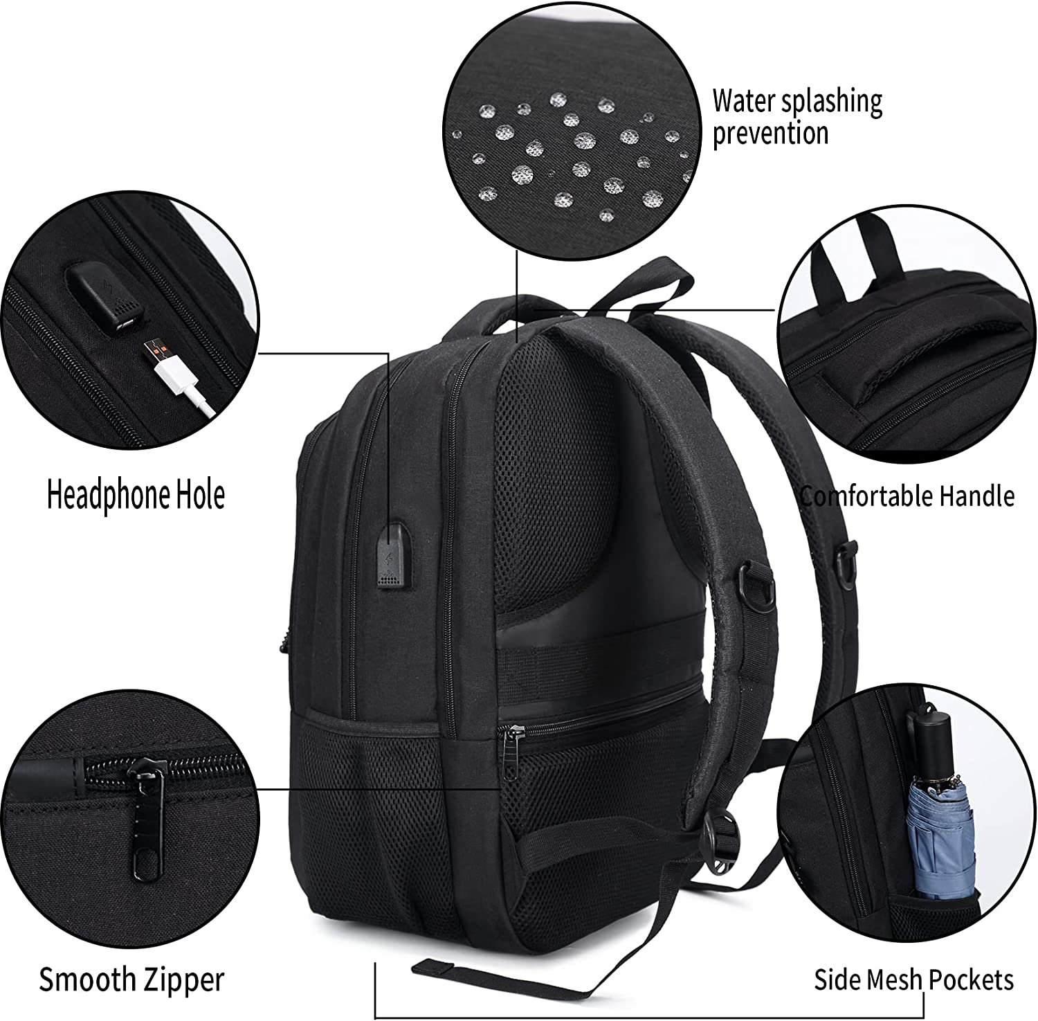 Store New Arrivals Add to Favorite View Feedback Contact Travel Laptop Backpack anti Theft Backpacks with USB Charging Port, Travel Business Work Bag 15.6 Inch College Computer Bag for Men Women, Black Description Item model number Mdbg001 Item Dimensions LxWxH 7.8 x 12.8 x 18.8 inches Color Black Series Travel Laptop Backpack Color Black Item Weight 1.5 pounds Department unisex-adult Standing screen display size 15.6 Inches Product Dimensions 7.8 x 12.8 x 18.8 inches Size 15.6 Inch LARGE CAPACITY&MANY POCKETS: This backpack has two main compartment pockets. One separate laptop compartment holds 15.6 Inch Laptop as well as 15 Inch, 14 Inch and 13 Inch Mac book or Laptop. The other one packing compartment with 3 open pockets is roomy for daily necessities and tech electronics accessories. Front compartment with zipper pockets and pen pockets; 2 small elastic mesh side pockets; 1 rear padded pocket. Make your items organized and easier to find. HIGH QUALITY MATERIAL: Our backpack made of waterproof and quality Polyester fabric with metal zippers. Lightweight and sturdy, ensure a secure & long-lasting usage every day. Perfects for weekend getaways, shopping, office work, business traveling and other outdoor activities. Also, it is a perfect travel laptop backpack for women men. ANTI-THEFT&FUNCTIONAL: The backpack back luggage strap allows travel laptop bag fits on suitcase, slide over the luggage upright handle tube for easier carrying. A small anti-theft pocket located on the lower back keeps your phone, wallet, passport, and other valuable items safe and handy. Internal shockproof belt is for fastening your laptop and iPad, preventing them from sliding and bumping. CONVENIENT USB PORT DESIGN: With built in USB charger outside and built in charging cable inside, great convenience for charging your electronic items via connecting your own power bank, offers you a more convenient way to charge your phone while walking. Please note that this backpack doesn't power itself, usb charging port only offers an easy access to charge. COMFY & BREATHABLE BACKPACK: Adjustable shoulder straps and back side comes with comfortable and breathable mesh design, relieves the stress of your shoulder. A comfortable airflow foam-pad back design with soft, multi-panel breathable mesh padding, offer your back maximum back support. A foam-padded top handle for a long time carry on. Product Description Features for Laptop Backpack: Large capacity with many pockets Convenient USB port design Comfy and sturdy Anti-theft and functional High quality nylon material A perfect gift Ergonomic Design "S" curve padded shoulder straps, offers light-weight carrying and of force reinforcement. FOLLOW YOUR HEART Suitable for a variety of occasions, perfects for weekend getaways, shopping, office work, college, business traveling and other outdoor activities. Water Resistant Backpack Made of waterproof and high quality nylon fabric A comfortable, soft and sturdy handle External USB Charging Port With built in USB charger outside and built in charging cable inside, great convenience for charging your electronic products via connecting your own power bank, offers you a more convenient way to charge your phone while walking. Large Capacity with Many Pockets This backpack has two main compartment pockets. One separate laptop compartment holds 15.6 Inch Laptop as well as 15 Inch, 14 Inch and 13 Inch Mac book or Laptop. The other one packing compartment with 3 open pockets is roomy for daily necessities and tech electronics accessories. Front compartment with zipper pockets and pen pockets; 2 small elastic mesh side pockets; 1 rear padded pocket. Make your items organized and easier to find. Luggage Strap Design The backpack back luggage strap allows travel laptop bag fits on suitcase, slide over the luggage upright handle tube for easier carrying. Anti-theft Pocket A small anti-theft pocket located on the lower back keeps your phone, wallet, passport, and other valuable items handy. ABOUT US We offer the best prices around on high quality products. Our E-store includes media such as books, movies, music and games while offering electronics, toys, sporting apparel, clothing, tools, general home, garden items and more. SHIPPING We are always working hard to ensure your package arrives as soon as possible. Please understand that some factors like weather, high postal traffic, and the performance of shipping companies are outside of our control. We offer free shipping to the lower 48 states and ship within 2 business days of payment, usually sooner. We do not accept P.O. Boxes. Please provide a physical address. For shipping outside of the continental USA, we only use eBay's Global Shipping Program.The item is shipped to KY and then sent to the rest of the world. International customers are responsible for all duties and taxes. Continue to check out in order to calculate costs for shipping the item to your country. Messages regarding eBay's Global Shipping Program MUST be directed at eBay EXCLUSIVELY. RETURNS We offer a 30-Day Return Policy on items which you are not completely satisfied with. You have the option for a full-refund or an exchange of the item. No returns are available on items shipped outside of the USA. PAYMENT We accept PayPal. CONTACT US This page content is yet to come Please ad us to your favorite seller and visit again later Thank You CUSTOMER SATISFACTION We try our very best to make sure every customer is completely satisfied. If there's a problem, message us! We're happy to help. WE ACCEPT