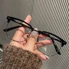 Fashionable Anti-Blue Light Clear Lens Half Frame Eyeglasses - Protect Your Eyes in Style REDUCE EYE STRAIN - Stay comfortable and focused with these anti-blue light glasses that block harmful rays emitted by screens. STYLISH DESIGN - Look good while protecting your eyes with this trendy half-frame design suitable for men and women. PREMIUM QUALITY - Crafted from durable metal, these optical eyeglasses are built to last and provide reliable vision support. ALL-DAY COMFORT - Lightweight construction ensures a comfortable fit for extended wear, perfect for work or leisure activities.
