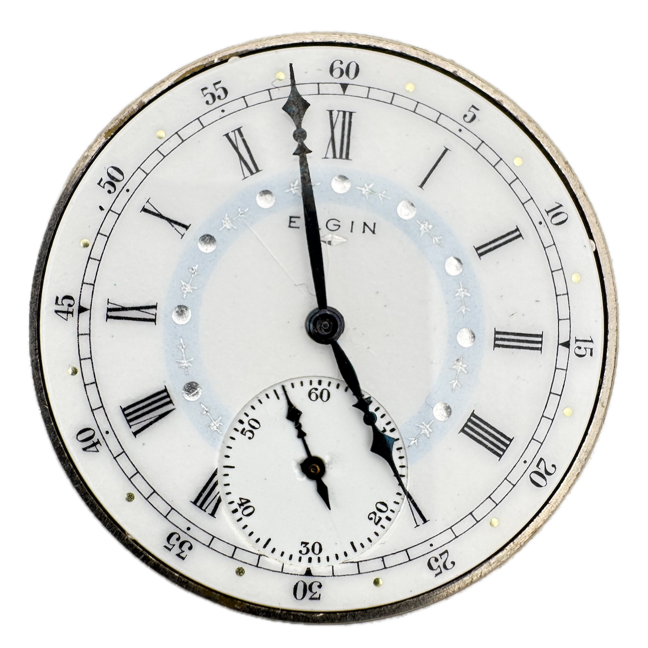 Antique 12s 1911 Elgin Multicolor 15j Hunter Pocket Watch Movement 314 USA Product Description Item: Pocket Watch Movement Brand: Elgin Model: Multicolor Production Year: 1911 Country: USA Jewels: 15j Gender: Men's Grade: 314 Size: 12s Product Measurements Diameter: 40mm Product Condition Overall Condition: Fair, overall condition for its age. Functions: Running, but may be in need of service. This means, it can run unreliably, start or stop and timekeeping is not guaranteed. Dial: The dial has light scratches on it.