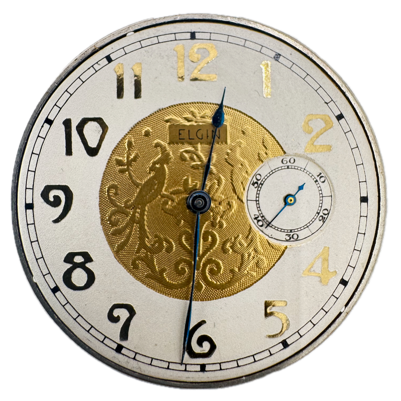 Antique 12s 1919 Elgin 15 Jewel Mechanical Pocket Watch Movement 314 USA Product Description Item: Pocket Watch Movement Brand: Elgin Movement: Mechanical Production Year: 1919 Country: USA Jewels: 15 Jewel Gender: Men's Grade: 314 Size: 12s Product Measurements Diameter: 39.5mm Product Condition Overall Condition: Fair, overall condition for its age. Functions: Running, but may be in need of service. This means, it can run unreliably, start or stop and timekeeping is not guaranteed. Dial: The dial is in good condition.