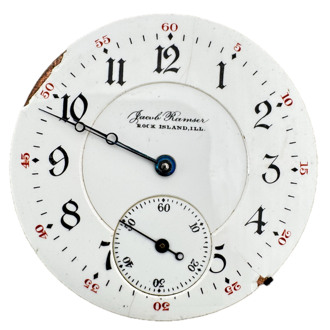 Antique 16s 1903 Illinois 17j Mechanical Hunter Pocket Watch Movement 174 USA Product Description Item: Pocket Watch Movement Brand: Illinois Movement: Mechanical Production Year: 1903 Country: USA Jewels: 17j Gender: Men's Grade: 174 Size: 16s Product Measurements Diameter: 43mm Product Condition Overall Condition: Fair, overall condition for its age. Functions: Running, but may be in need of service. This means, it can run unreliably, start or stop and timekeeping is not guaranteed. Dial: The dial has chips on it.
