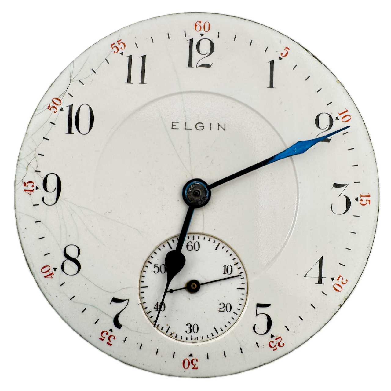 Antique 16s 1909 Elgin 17 Jewel Mechanical Pocket Watch Movement 340 USA Product Description Item: Pocket Watch Movement Brand: Elgin Movement: Mechanical Production Year: 1909 Country: USA Jewels: 17 Jewel Gender: Men's Grade: 340 Size: 16s Product Measurements Diameter: 43mm Product Condition Overall Condition: Fair, overall condition for its age. Functions: Running, but may be in need of service. This means, it can run unreliably, start or stop and timekeeping is not guaranteed. Dial: The dial has hairline crack(s) on it.
