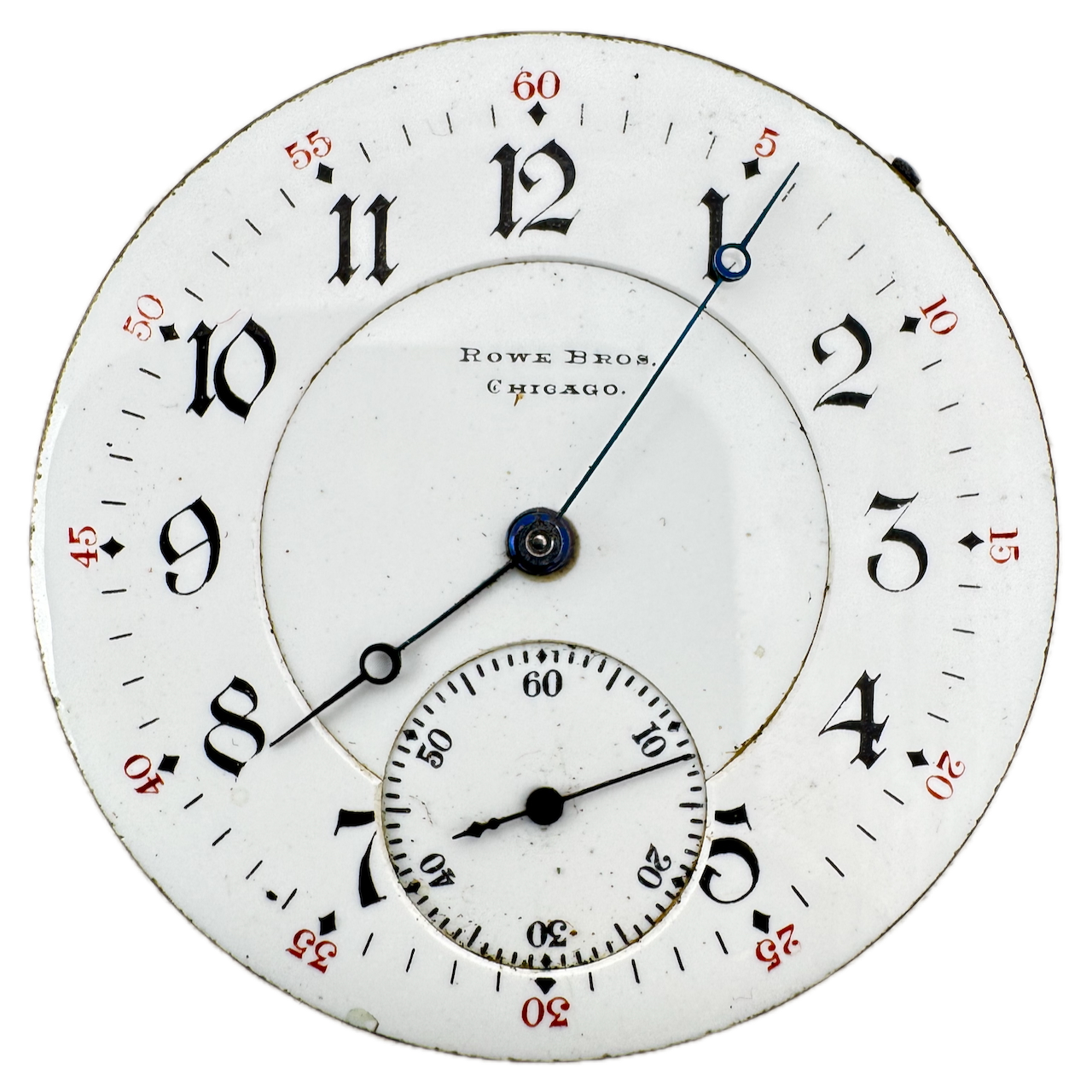 Antique 16s Illinois Rowe Bros 17 Jewel Mechanical Pocket Watch Movement 174 Product Description Item: Pocket Watch Movement Brand: Illinois Model: Rowe Bros Movement: Mechanical Jewels: 17 Jewel Gender: Men's Grade: 174 Size: 16s Product Measurements Diameter: 43mm Product Condition Overall Condition: Fair, overall condition for its age. Functions: Running intermittently, will need service. Dial: The dial has light scratches on it.