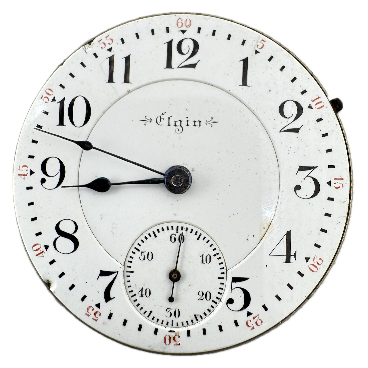 Antique 18s 1900 Elgin 21J Mechanical Railroad Pocket Watch Movement 181 Runs Product Description Item: Pocket Watch Movement Brand: Elgin Movement: Mechanical Production Year: 1900 Country: USA Jewels: 21J Gender: Men's Grade: 181 Size: 18s Product Measurements Diameter: 45.5mm Product Condition Overall Condition: Fair, overall condition for its age. Functions: Running, but may be in need of service. This means, it can run unreliably, start or stop and timekeeping is not guaranteed. Dial: The dial has chips on it. Crown: It is missing the stem. Hands: The hands have rust on them.