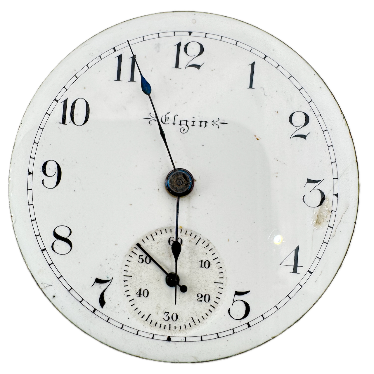 Antique 18s 1910 Elgin 7 Jewel Mechanical Pocket Watch Movement 288 USA fParts Product Description Item: Pocket Watch Movement Brand: Elgin Model: 5 Movement: Mechanical Production Year: 1910 Country: USA Jewels: 7 Jewel Gender: Men's Grade: 288 Size: 18s Product Measurements Diameter: 46mm Product Condition Overall Condition: Poor, overall condition for its age. Functions: Not running but the balance complete is in good condition. This item has not been fully inspected. Internal components may be damaged or missing. No guarantees are made regarding completeness or functionality of the movement. Dial: The dial has chips on it. White Crown: It is missing the stem. Hands: The hands have rust on them.