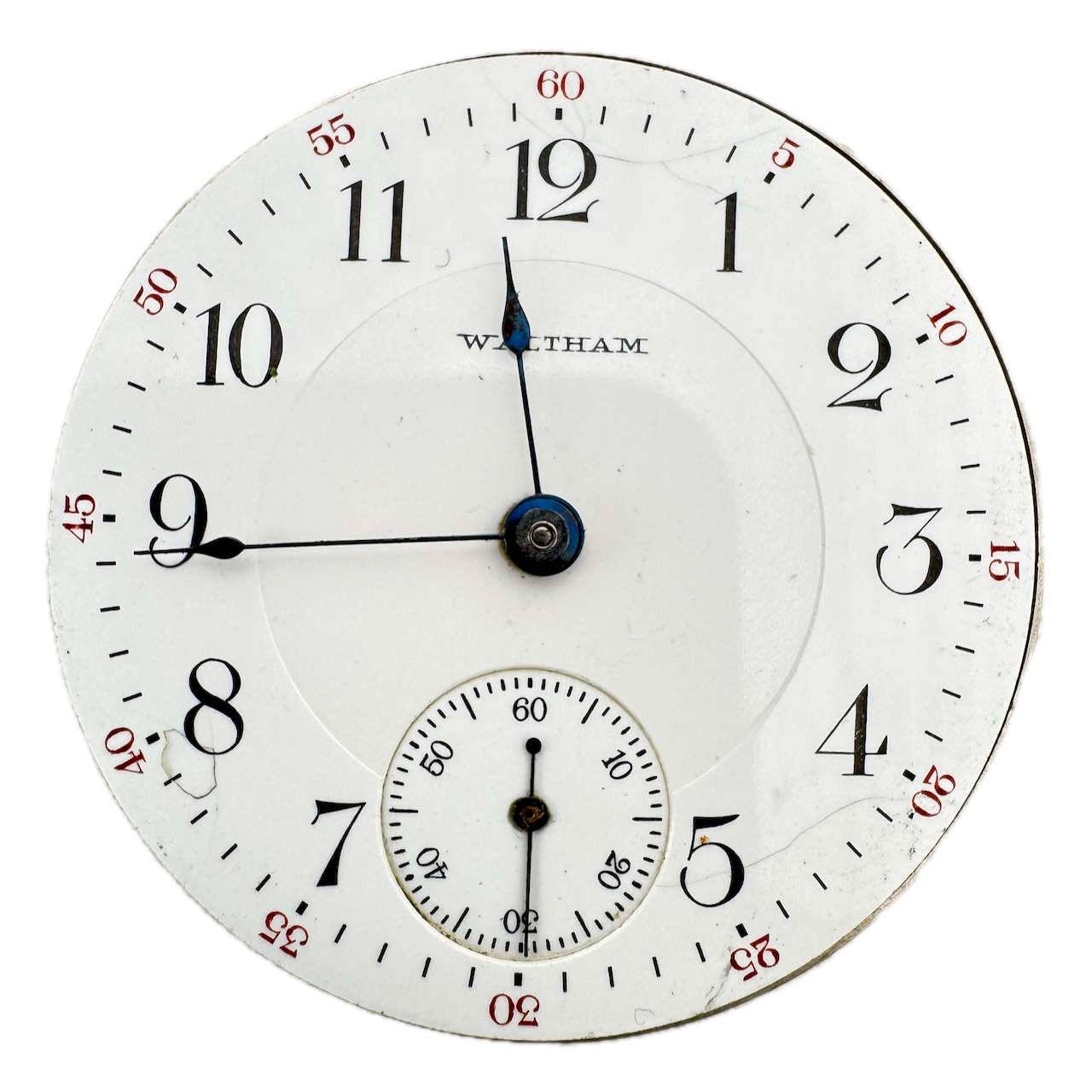 Antique 18s 1912 Waltham 17 Jewel Mechanical Pocket Watch Movement 825 USA Product Description Item: Pocket Watch Movement Brand: Waltham Movement: Mechanical Production Year: 1912 Country: USA Jewels: 17 Jewel Gender: Men's Grade: 825 Size: 18s Product Measurements Diameter: 45.5mm Product Condition Overall Condition: Fair, overall condition for its age. Functions: Running, but may be in need of service. This means, it can run unreliably, start or stop and timekeeping is not guaranteed. Dial: The dial has scratches on it. Hands: The hands have rust on them.
