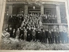 This is an antique 1900s photograph featuring 100+ men, likely of a fraternal or Masonic organization. The photograph is large, measuring 7.5" x 9 5/8" mounted to a cardboard mount measuring 11.75 x 13.75 inches, and is mounted on cardboard. It is a black and white original print from the early 1900s, showcasing a vintage piece of collectible history. Image has a photographer name on the bottom left of the mount, it's either Mcluxy or McLury, Shipping and Handling for our Photographs is $5.00. This rate is good for a single photograph or unlimited photographs. We ship first-class mailers by USPS with bubble mailers when your total order is less than $100.00. If your order exceeds $100, we will ship by USPS Priority Mail. All packages shipped will include a tracking number. We have a 14-day return policy for all items. We will leave feedback when your item is packaged and shipped. Please return this feedback as our receipt you have received the item.
