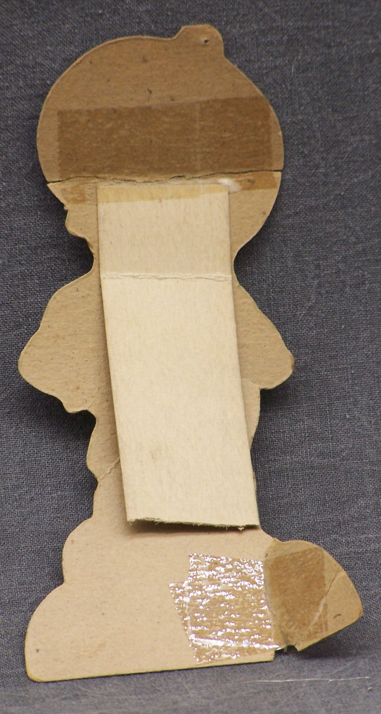 It is 5 5/16" tall It is in fair condition showing wear on the edges and corners, with several crease and a tear at the bottom. It does not stand on it own any longer. Please check our other items, we will combine items to save you shipping cost Please ask questions before purchasing. Check back often we are always adding new items Thanks for taking the time to look at our items!