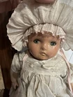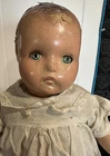This little Sweetie Pie was my mom's first baby doll. Mom was born in 1931, and has since passed. She has beautiful, blue, sleepy eyes that close. There is no name nor brand on the doll. She wear s her original clothing, dress, and cap. Condition is Good, for a loved doll that is over 90 years old. Hair has chipped off in center of head, legs are crazed, some paint around mouth missing, Cracks on face. I have tried to list all imperfections, may have missed some. Check out the pics, please. My hope is that someone will really love her, and appreciate her. I no longer have room for her at my home. She is 15" tall, and about 6" wide, through the body. I also have two more little, all composition dolls for sale. Check them out. Please ask questions before purchase. It's not fun doing returns. Items will always be mailed within one business day of purchase, and by using the most reliable and cost efficient method. If there is a huge difference in price, you will receive a shipping credit. I want to foster great lines of communication with my buyers. Please check out all photos, and feel free to ask questions before purchase. Thanks for looking, and check out my other fab items for sale.