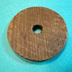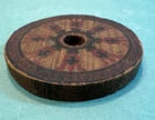 3" wheel with opening a bit smaller than 1/2" , 3/8” thick. paint decorated, not a paper litho.