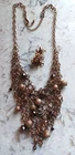 This beautiful MCM Style bib Necklace and earrings set is perfect for any occasion. The Beaded ball design in Aged Brass with a bronze color gives a mid-century style fashion jewelry feel. The necklace is an approximate 13-inch chain link with a lobster clasp closure. The bib pendant style and waterfall dangling look add a unique touch to this set. Earrings are included and has no signs of wear or damage. This piece is a must-have for any fashion jewelry collection and is perfect for both casual and formal events.