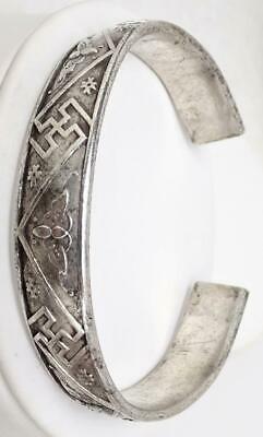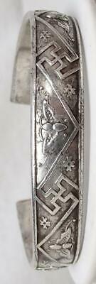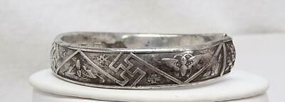 From a collection an antique Chinese silver hand chased split bracelet. Signed, photos. Finely detailed. Great condition. Band is thick & not flexible. Measures ½” wide, interior diameter 2 3/8” x 2 1/8”, opening 1 1/8”, weighs 53.6 grams. Antique Chinese Silver Hand Chased Split Bracelet 53.6g Signed Antique Chinese Silver Hand Chased Split Bracelet 53.6g Signed Click images to enlarge Description From a collection an antique Chinese silver hand chased split bracelet. Signed, photos. Finely detailed. Great condition. Band is thick & not flexible. Measures ½” wide, interior diameter 2 3/8” x 2 1/8”, opening 1 1/8”, weighs 53.6 grams. Payment PAYMENT VIA PAYPAL IS DUE WITHIN THREE DAYS OF PURCHASE. Shipping CONTINENTAL USA SHIPPING $10.00 is by USPS. Items are insured by Shipsurance and evidence of insurance will not appear on package. On purchases over $300.00 USPS PRIORITY MAIL is required. I will gladly combine items. INTERNATIONAL SHIPPING COSTS will be determined by location. I ship by USPS & will provide buyers with shipping costs by USPS FIRST CLASS INTERNATIONAL MAIL. On purchases over $300.00 USPS PRIORITY MAIL INTERNATIONAL is required. All items are insured. I am happy to combine shipping. ALSO TO INTERNATIONAL BUYERS, I AM NOT RESPONSIBLE FOR CUSTOMS FEES!! PLEASE DON'T ASK ME TO REDUCE STATED VALUE ON CUSTOMS FORMS!!! Terms of Sale ALL SALES ARE FINAL UNLESS I HAVE MISREPRESENTED THE ITEM. I MAKE EVERY EFFORT TO PROVIDE DETAILED, ACCURATE DESCRIPTIONS & PHOTOS OF ALL ITEMS, AND ENCOURAGE BUYERS TO ASK SPECIFIC QUESTIONS. PLEASE BE AWARE THAT THE VAST MAJORITY OF MY PIECES ARE VINTAGE & ANTIQUE, AND CONSEQUENTLY NOT IN NEW CONDITION. About Us I've been collecting vintage & antique jewelry as well as eclectic bric a brac all my life. I love combing through estate sales, flea markets & antique shows for treasure. Now I'm slowly going through it & offering pieces for sale. I make every effort to describe my items in great detail and provide many photos. Please remember that my pieces are vintage & antique, and consequently are not in new condition. I'm always happy to answer specific questions. Contact Us PLEASE FEEL FREE TO CONTACT ME WITH QUESTIONS, I WILL USUALLY RESPOND THE SAME DAY. Get images that make Supersized seem small. Showcase your items with Auctiva's Listing Templates! THE simple solution for eBay sellers. Track Page Views With Auctiva's FREE Counter