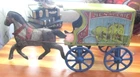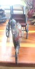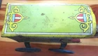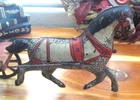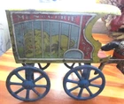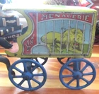 This antique Converse Horse Drawn Menagerie Wagon Tin & Wood Vintage Toy Circus Graphic is a rare find for collectors of vintage toys. The wagon is made of tin and features intricate designs on the walls and roof. The horse is made of tin and are beautifully crafted with attention to detail. The seat on the inside is made of wood. This toy is sure to impress anyone who sees it and would make a great addition to any collection. The year of manufacture is 1900 and it was made in the United States, adding to its vintage charm. It stands 6 1/2 inches tall and measures 4.25" x 13.25".
