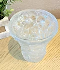This antique vase from Josef Inwald Barolac is a stunning piece of art glass. The clear frosted glass beautifully showcases a delicate pansy flower, and the art deco style adds a touch of elegance to any room. Made in 1930, this original vase is a rare find for collectors of antique glassware. The vase stands at 6 inches tall and features intricate floral patterns. Perfect for displaying fresh flowers or as a standalone decorative piece, this antique vase is a must-have for any lover of art glass. So Unique!