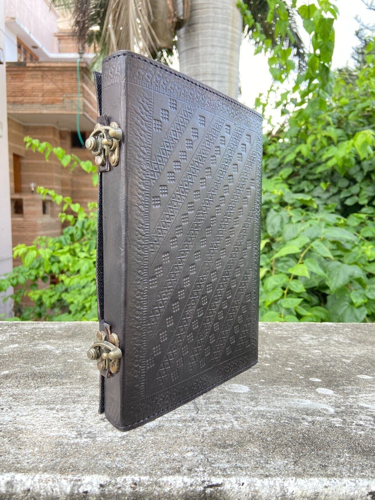 Beautifully crafted handmade journal with free express delivery.. Our beautifully embossed tree of life leather journal is ideal for the passionate writer in your life, give them an inspirational gift they will cherish. Handmade, eco-friendly and Fair Trade, this leather journal is the perfect way to note down all of your thoughts and it also makes a positive difference to the communities who make them. Symbolising a fresh start, positive energy and good health as well as a connection to nature, the tree of life journal is ideal for the more spiritual person in your life and could make a really special gift. Beautifully Handcrafted Design: Antique New Handmade (Front Cover), Diagonal Floral and Geometric Design(Back Cover) A unique lock which increases its beauty and makes it more antique in looks Journal Size: 10” x 7'' x 1.5'' Pages: 200 Pages (Counting Both Sides)