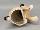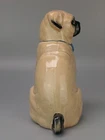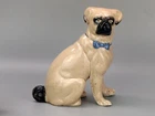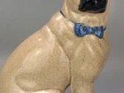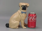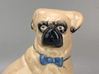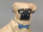 Antique Pug Dog with Bowtie Figurine Staffordshire In very good condition, Crazing and firing hairline on the base (stable) typical for early pieces underglaze areas on baseline Size H 20cm - Please refer to the second picture with the (coin size 2.5cm) and the (cola can 12cm) Weight 455g Available 3 different sizes and age (pic 3) This figurine comes from a large private collection of Pug dogs including jewellery, tea cups, and many more... Lovely pug dog figurine is for any dog lover or collectors