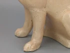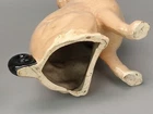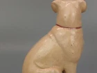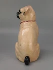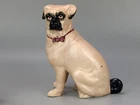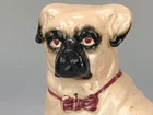 Antique Pug Dog with red Bowtie Figurine Staffordshire In very good condition, imperfection on glaze, Crazing and firing crack/hairline (stable) on leg, underglaze areas on baseline, the darker spots are underglaze Size H 20cm x 16cm Please refer to the second picture with the (coin size 2.5cm) and the (cola can 12cm) Weight 370g Available 3 different sizes and age (pic 3) This figurine comes from a large private collection of Pug dogs including jewellery, tea cups, and many more... Lovely pug dog figurine is for any dog lover or collectors