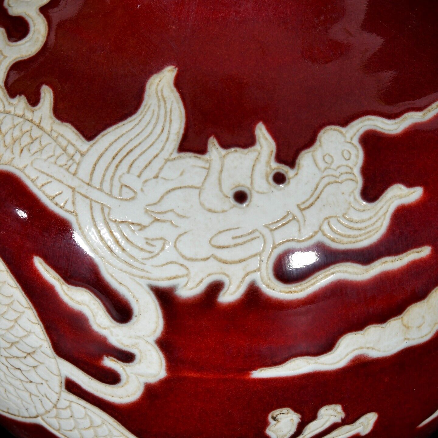 $ 210.68Antique Red Porcelain Dragon Vase Hand-Painted Underglaze Art