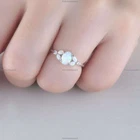 Antique Statement Fine Birthday Ring 14k White Gold Opalite Diamond Gemstone
