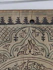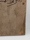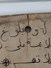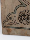 Antique Vintage Wooden Wall Art Plaque With Arabic Script & Details 14" I've included a screenshot of the translation to English from Google Lens. The wood has split near the hanging hole, but it seems fine. I'm unsure of the age of use, but there are areas of discoloration and fading. It's about 14" tall and 10.5" wide at the top and 9.25" at the bottom.