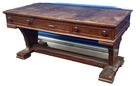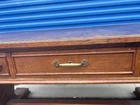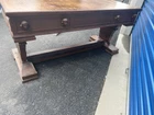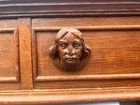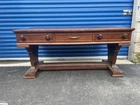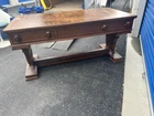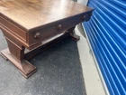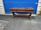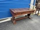This antique desk is a stunning piece that showcases intricate carvings and Renaissance-inspired designs. Crafted from high-quality oak wood, it boasts three spacious drawers for ample storage space. The desk stands at 30 inches tall, 63 inches long, and 31.5 inches wide, making it a perfect fit for any home or office. The desk's rich brown color and wooden handles give it a classic, antique feel, while its Gothic Revival style adds a touch of drama and elegance. This is the perfect addition to any collection of antique furniture, and is sure to be a statement piece in any room. Top could be redone but overall good condition. Has been taken apart top has scratches. Shipping is uship and can take up to 20 days or longer.