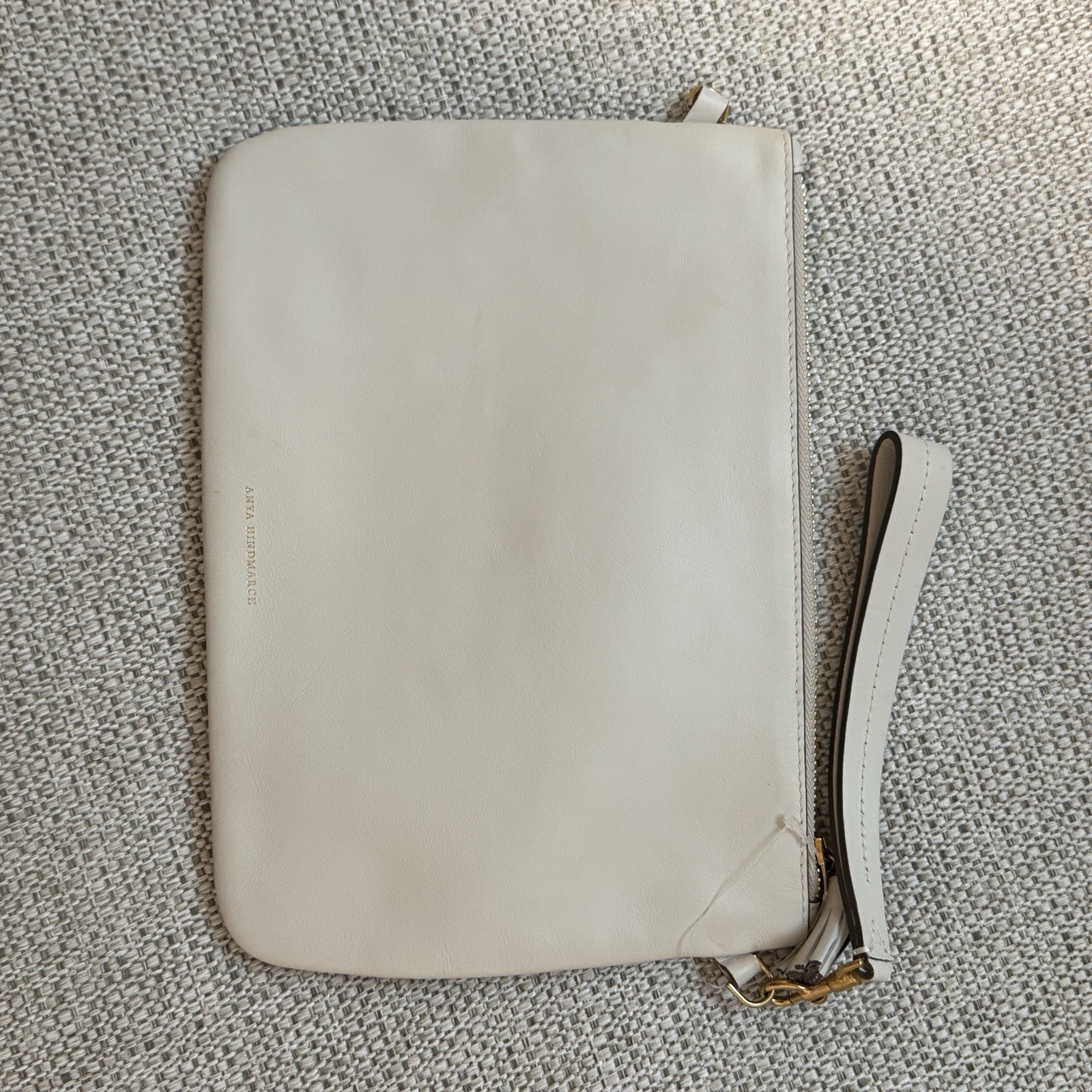 Anya Hindmarch LOVE Wristlet Pouch Clutch in Off-White Leather with Velvet Lettering R146