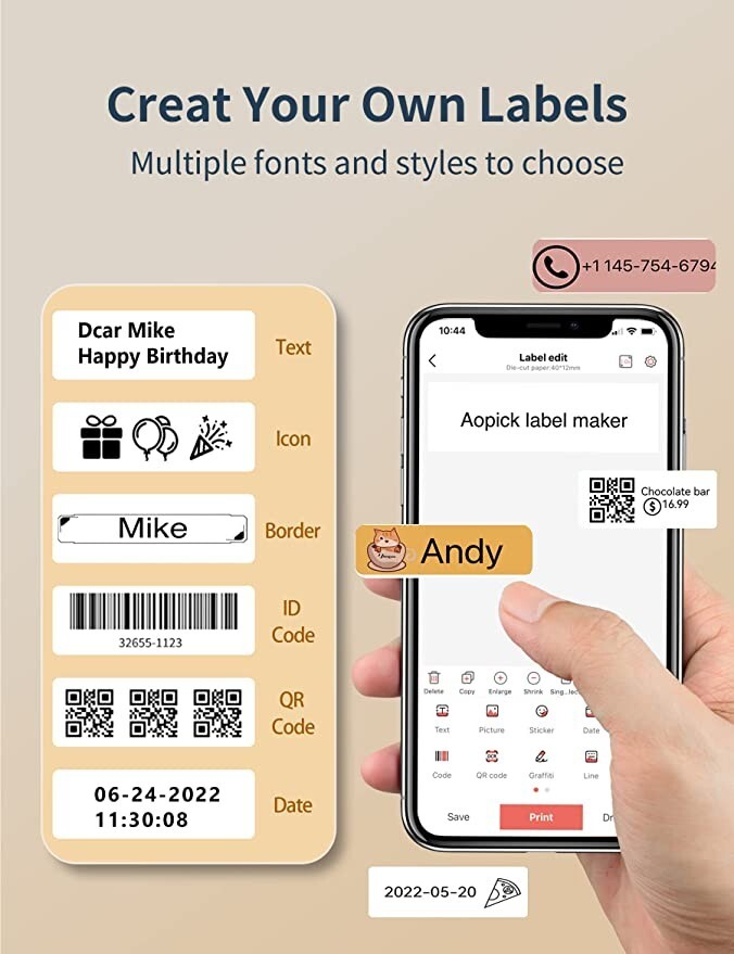 Label Maker Machine, Aopick Label Printer with 2 Roll Label Tapes and 1 Sticker,.