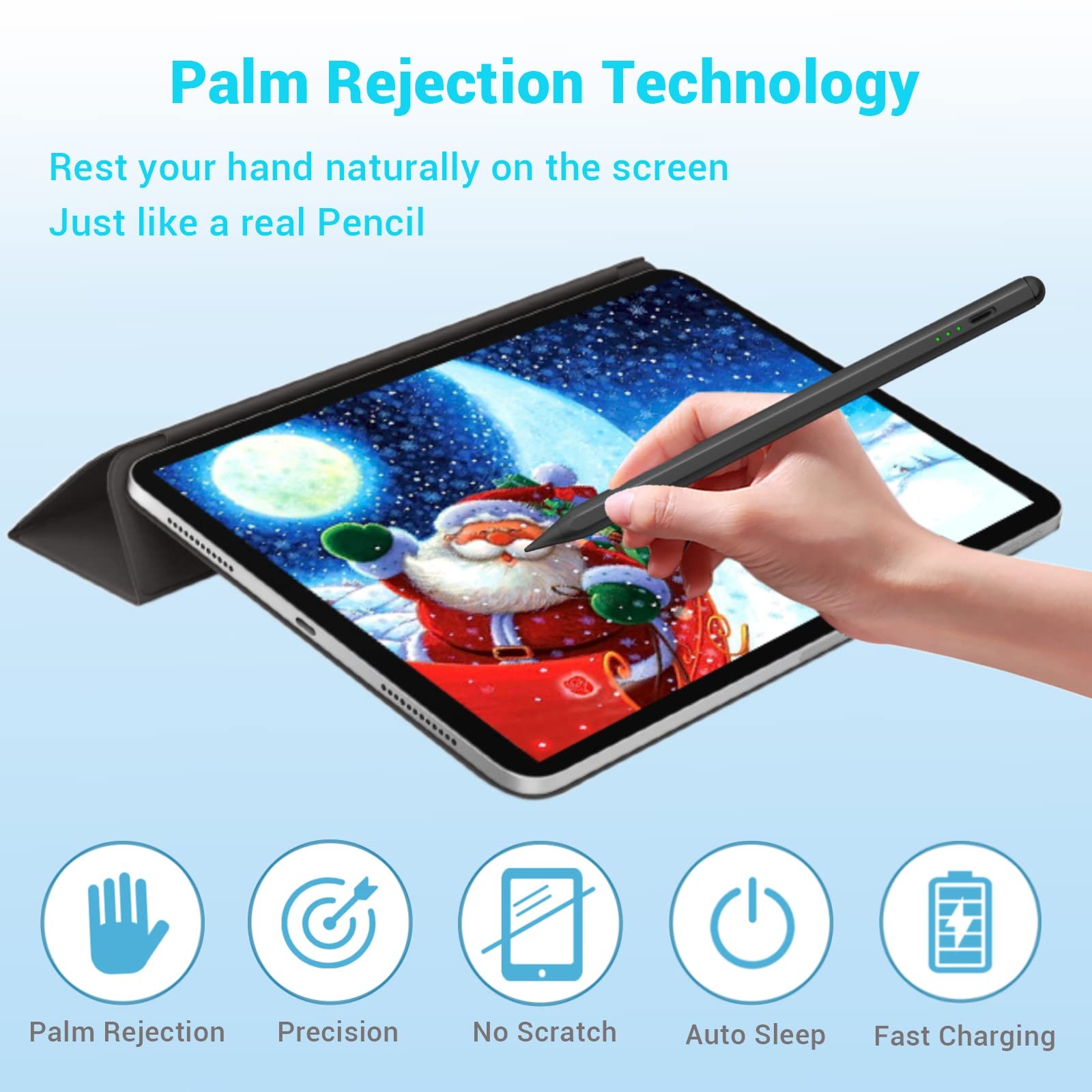 The stylus pens for iPad is Slim sleek and light, just like a conventional pencil, but with pixel-perfect precision. The New Gen aims to develop a stylus that can improve your writing experience just like apple pencil 2nd generation. The ipad stylus pen with its 1.5 mm tip offers an accurate writing and sketching experience, due to its precision and it gives you a realistic feeling while drawing or painting. The pencil for ipad will change your work life. Work for 2018-2024 iPad: The Stylus pen for ipad is compatible with apple ipad 2018-2022 Ipad 10.2 inch 9th 8th 7th Gen, ipad 9.7" 6th Gen, Ipad air 10.9 inch 5th 4th Gen, 10.5 inch 3rd GEN. Ipad mini 6th 5th Gen. Ipad pro ,11inch 1st 2nd 3rd Gen, 12.9inch 3rd 4th 5th Gen. Not Work for Ipad : The pencil Not work for apple iPad 12.9 inch 1st generation & 2nd Generation, iPad pro 10.5", iPad pro 9.7", Ipad mini 1th 2nd 3rd 4th Gen. iPad 1 to 5 Generation iPad Air 1st 2nd Gen earlier versions of iPad, iPhone, Android, and Microsoft devices. Please check your iPad model before place buy. Palm Rejection and Smooth: Upgraded ipad stylus pen for ipad with Palm rejection technology which is different from apple pencil 1st generation. rest your hand on the iPad screen without an uncomfortable glove while writing or drawing. It is similar to apple pencil, provides a natural and smooth writing feeling. Smooth cylinder pencil body with one flat side which is comfortable to hold / grip and not rolling. We commend that you can use this pen for your iPad with a glass screen protector. Perfectly Precise and Easy To use: The pen stylus for ipad is equipped with a 1.5mm replaceable screwed tip which is more precise, smoother and easy to replace, No lagging, No skips, No scratches. Compared with the ordinary ipad pen nib, it is not easy to break, higher durability and sturdier. This compatible ipad pencil is ideal alternative for replacing your apple pencil 2nd generation. Easy to use the digital pencil to browse the web, take notes, draw watercolors, sketch or mark. Touch Switch and Power Save : Touch the top button for apple pen to start at twice, Ipad mini pencil will turn on / off. Auto-off and turn in "Sleep Mode" after idle for 8-10 minutes to save power. The ipad pro pencil has a built-in battery which provides 20 hours active use while it's fully charged with USB cable in an hour.The active stylus pen is very light and compact.you can carry it to anywhere you want which is very convenient. So it is best stylus pencil for you ipad air/mini/Pro.
