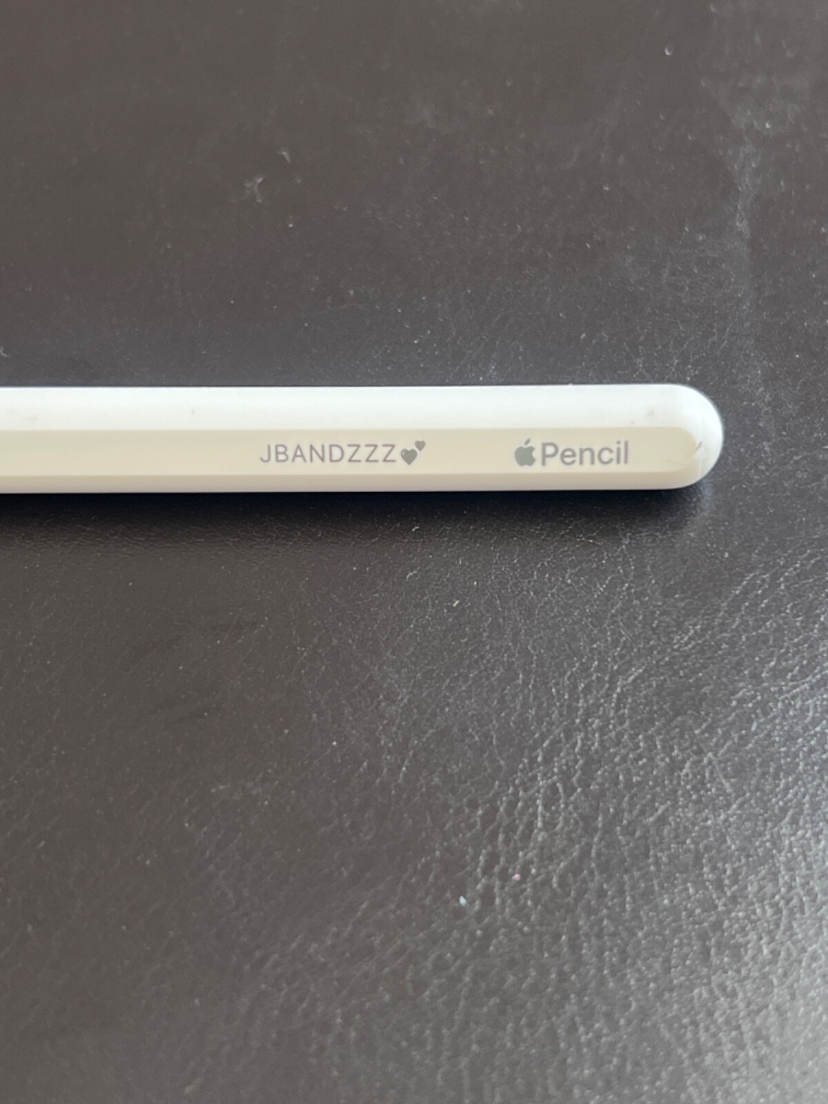 This is a second generation Apple Pencil that I previously used for my 5th gen iPad Air. I now have a new ipad that is not compatible with this pencil so it’s yours if you’d like. When I received it I engraved it to say “JBANDZZZ”. I also replaced the tip it came with but you can buy other tips for $3-$10.