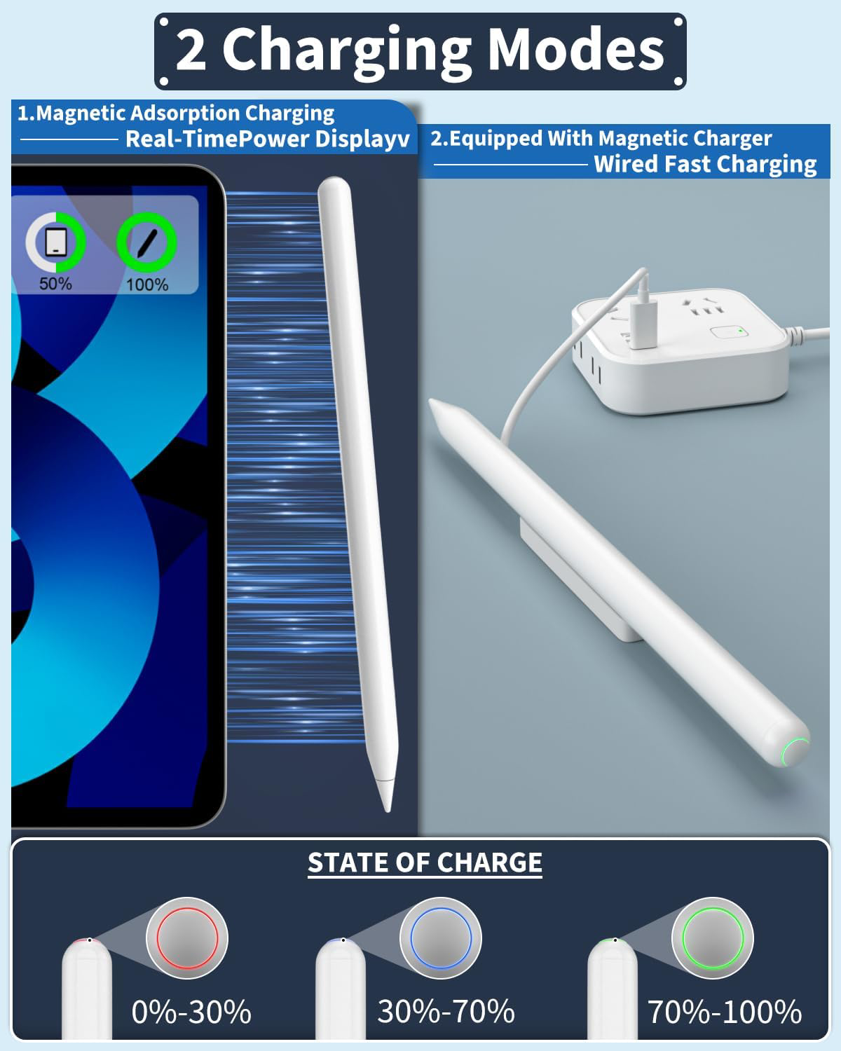 ???Identify the Your Model Number??????Method 1:Open the "Settings" > General> Look for "About" >The "Model" or "Model Number" will be listed here. 2: Find the model number by looking at the back of your iPad.The model number will typically start with the letter "A+4digits" For example "A1234." ???Compatible Models???: Compatible with iPad 6/7/8/9/10,iPad Pro 11 in 1/2/3/4,iPad Pro 12.9 in 3/4/5/6,iPad Air 3/4/5,iPad Mini 5/6. For details, you can view the product compatibility chart. For Ipad models that are not compatible with magnetic charging, you can use a wired charger to charge.NOT Compatible iPhone, Android, Microsoft devices. ???Two Convenient Charging Methods???: The iPad Pen featuring not one but two charging options to keep you productive at all times. Whether you opt for the magnetic suction or the wired charger.the delivers lightning-fast charging times. Spend less time waiting and more time being productive with a stylus pen that's always ready to go when you are. ???Excellent Function?????? You can simply tap the pen once to return to the home page instantly. Double-tap the pencil to access the iPad's task manager effortlessly. Say goodbye to reaching for the home button or swiping gestures. With just 1.5 hours of charging time, this remarkable stylus pencil delivers an impressive 9 hours??? Worried about wasting battery power? Fear not! The iPad stylus features a smart sleep mode that activates after 20 minutes of inactivity. ???Pixel-Perfect Precision???: The iPad pencil 2nd generation is designed to take your creativity and productivity to new heights.equipped with a precise 1.2MM nib that offers unparalleled pixel resolution. Enjoy smooth and accurate strokes, whether you're sketching, drawing, or taking notes on your iPad.The pen comes with two additional replacement nibs, compatible with Apple 1st and 2nd generation pencils.
