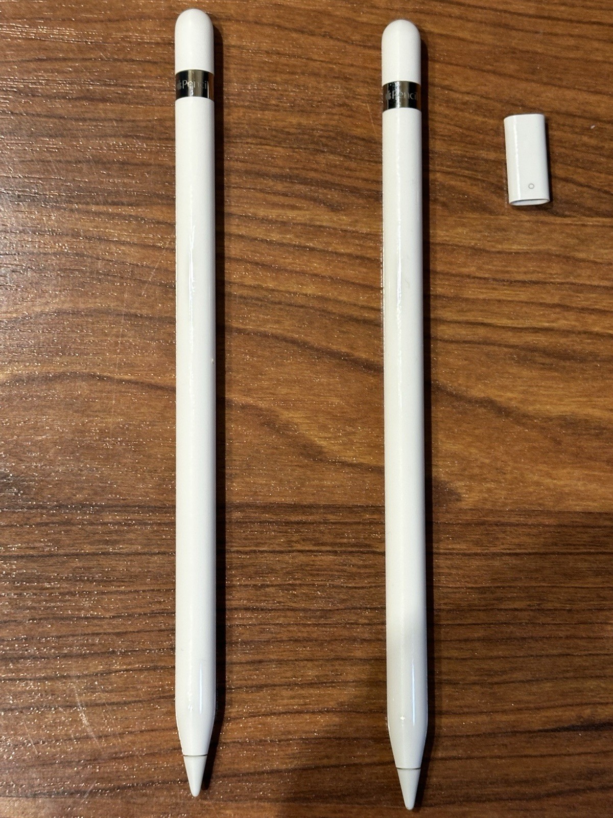 Apple Pencil (1st Gen) – Lot of 2 – Great Cosmetic Condition – Sold As-Is Selling two (2) Apple Pencil 1st Generation units. These were gently used and then stored in a drawer after upgrading. Both are in great cosmetic condition. IMPORTANT: They are recognized by iPads when connected but do not appear to charge. You may know a trick to restore them, but they are being sold as-is. No guarantees on functionality. No returns. Includes: • Both Apple Pencils (1st Gen) • 1x Charging Adapter Great for parts, repair, or someone who enjoys a challenge